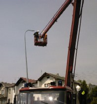 Strażak i pracownik energetyki w koszu SH-18